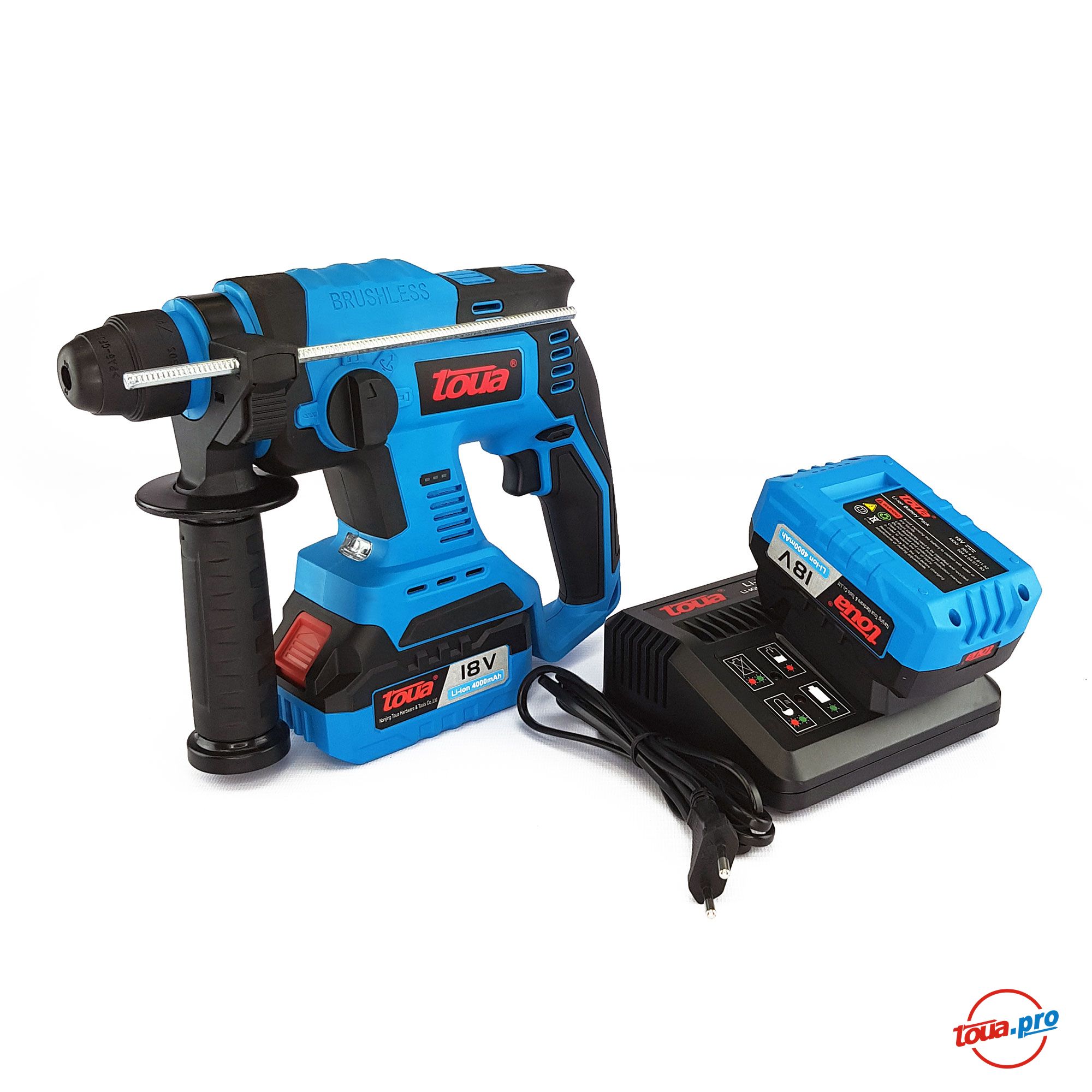 Аккумуляторный перфоратор SDS+ Toua DBLH180-1 с бесщеточным двигателем. Энергия удара: 2 Дж. Аккумулятор: 18 В, 4 А, Li-ion, 1 шт.