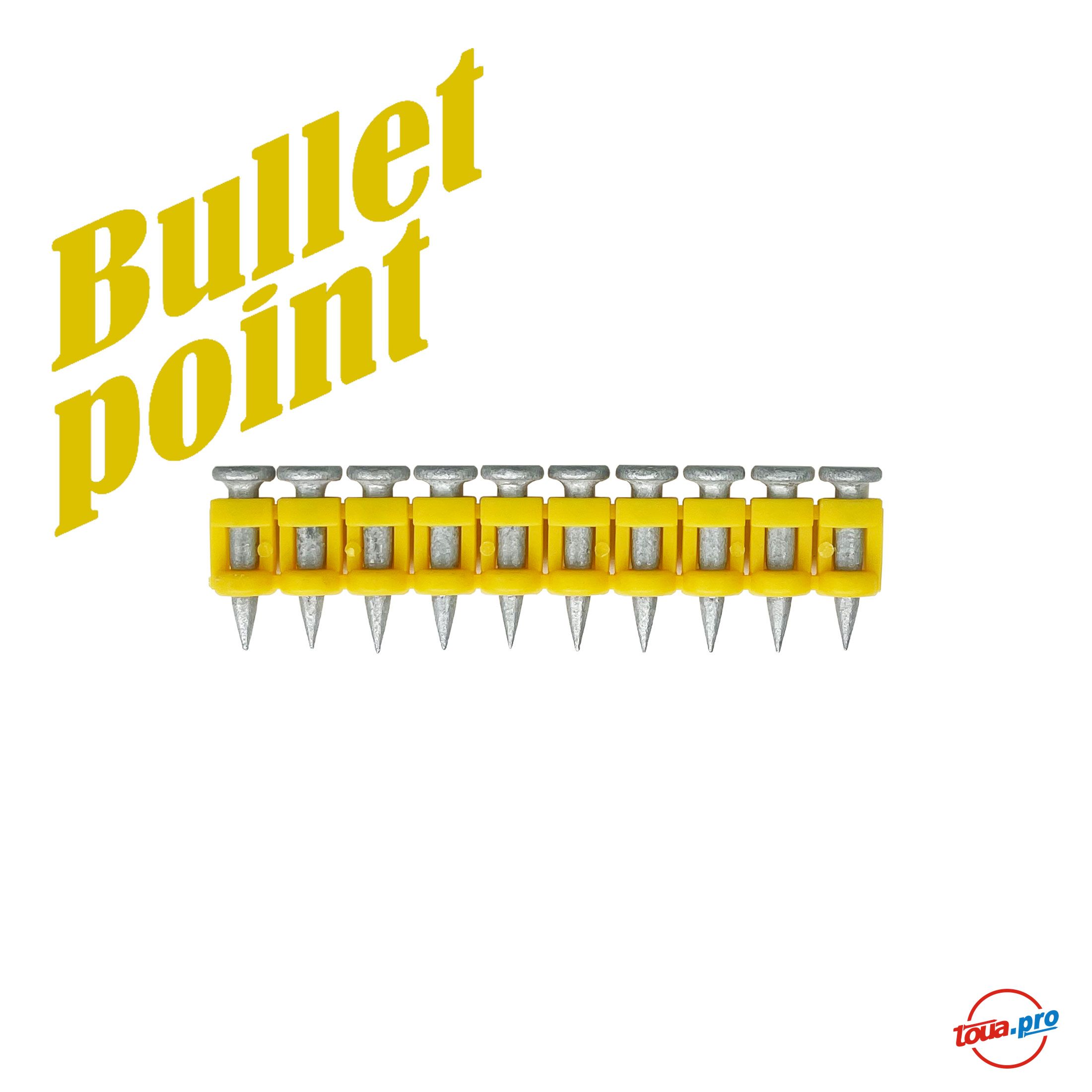 Усиленные гвозди по бетону металлу Toua CN MG Bullet Point 3,05x25 используются совместно с газовыми и аккумуляторными монтажными пистолетами.