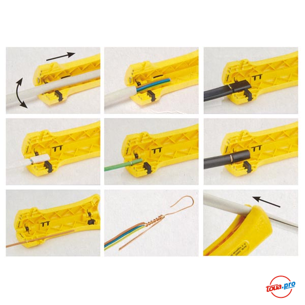 Диаметр кабеля 4-15 мм Электроизолированный (VDE) нет Регулировка диаметра реза есть Регулировка глубины реза есть Для коаксиальных кабелей есть Чехлы-рукоятки пластик -