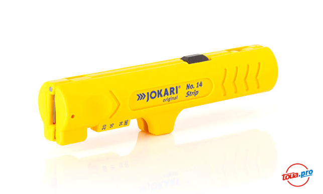 Инструмент для снятия изоляции JOKARI Strip No.14 30140 предназначен для работы с плоскими кабелями с ПВХ-изоляцией и шириной кабеля до 12 мм, а также круглыми кабелями сечением от 0,8 до 2,5 мм²