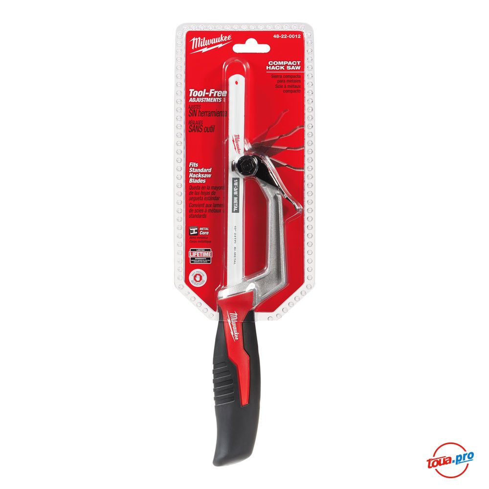 Компактная ножовка по металлу Milwaukee Compact Hack Saw 48220012. Полотна 12", бесключевая замена полотен. Обрезиненная рукоятка, компактный дизайн.