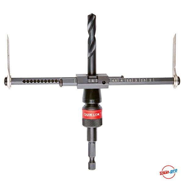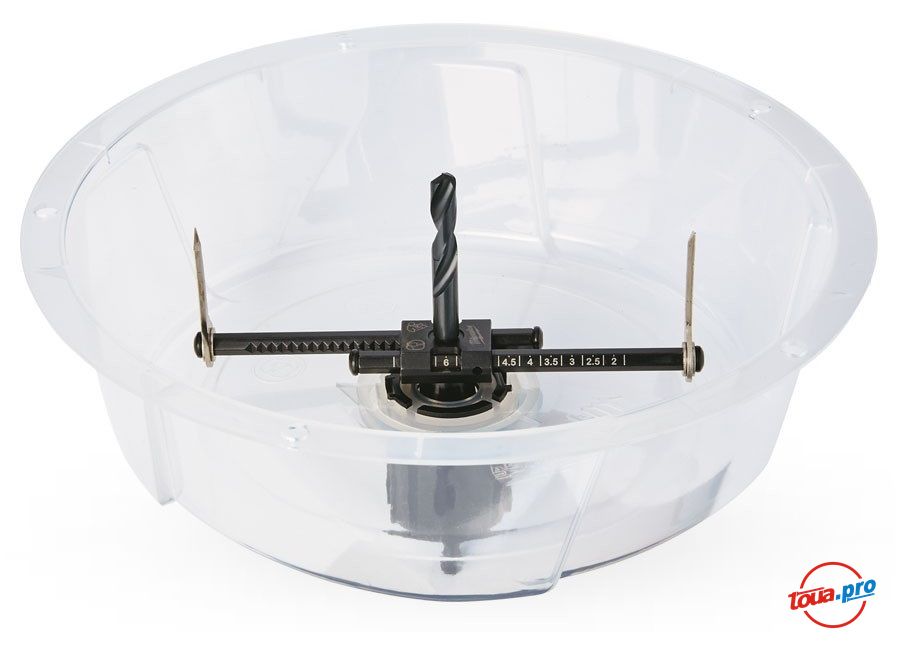 Коронка раздвижная (балеринка) Milwaukee 50-175 мм 49560260 предназанчена для проделывания отверстий большого диаметра под вентиляцию, трубы кондиционирования, светильники и потолочные колонки. Диапазон регулировки коронки от 51 мм до 178 мм с шагом 6.4 мм.