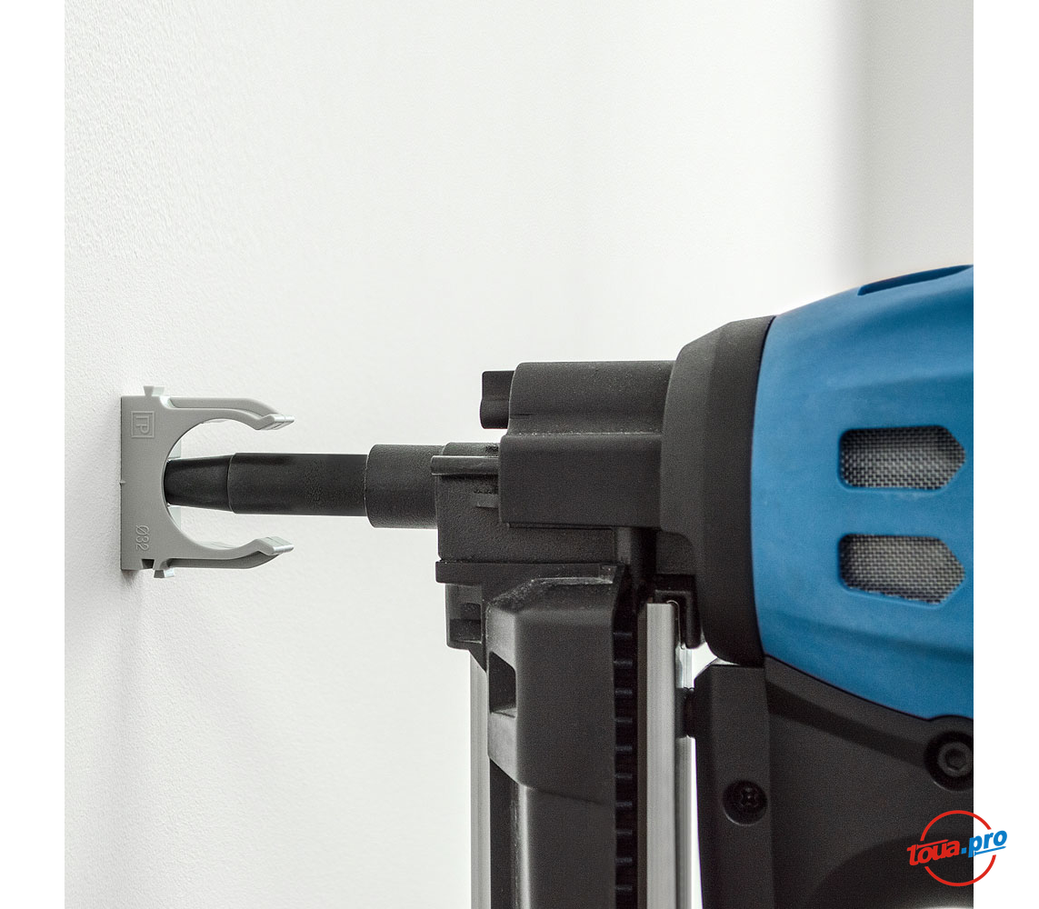 Клипсы Промрукав предназначены для монтажа проводки в гофротрубах, монтажа водонапорных труб и прочих работ по прокладке сетей, требующих использование труб. Клипсы используются совместно с газовым монтажным пистолетом Toua GSN50E и Toua GSN F1, могут крепиться к бетону, кирпичу и металлу. Крепеж-клипсы закрепляются на стволе газового монтажного пистолета, не требуют поддержки рукой.
