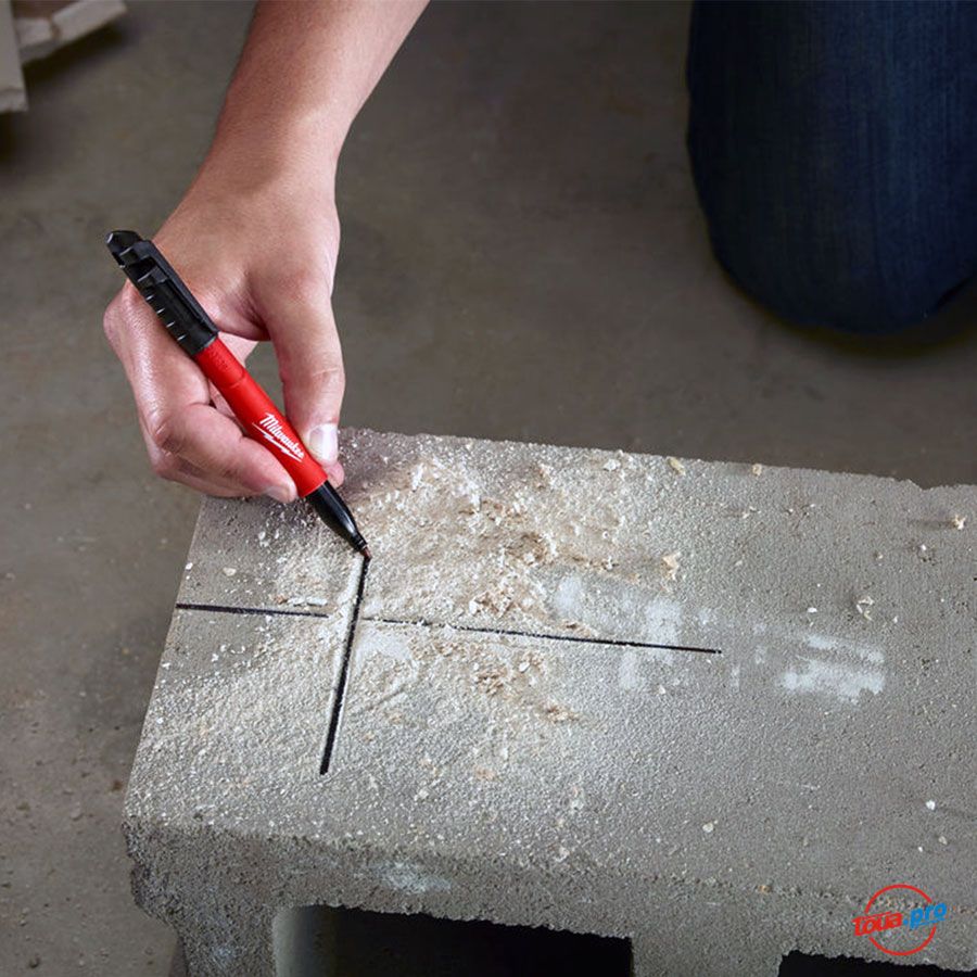 Строительный маркер MILWAUKEE INKZALL 48223100 с тонким пером. Не высыхает, может оставаться открытым до 72 часов. Пишет на керамической, бетонной, металлической, деревянной и пластиковой поверхностях.