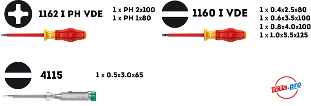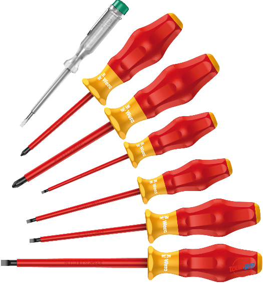 Набор отверток Wera Kraftform Comfort VDE1160 i/7 с индикатором напряжения. Ручка многокомпонентная Kraftform с защитой от перекатывания, рабочий конец изолированный, поштучный контроль. Применение: винты со шлицем и крестовым шлицем Phillips-Recess.