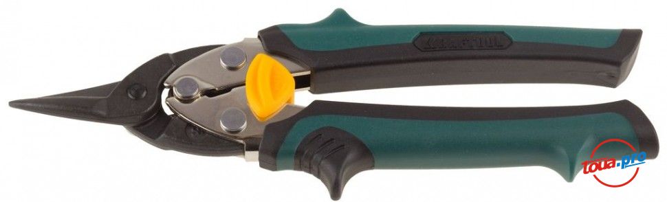 Ножницы по металлу Kraftool UNI-Kraft 180мм усиленные прямые Cr-Mo 2326-S. Применяются для прямой, левой, правой, фигурной резки материалов из стали повышенной твердости, нержавеющей стали, цветных металлов.