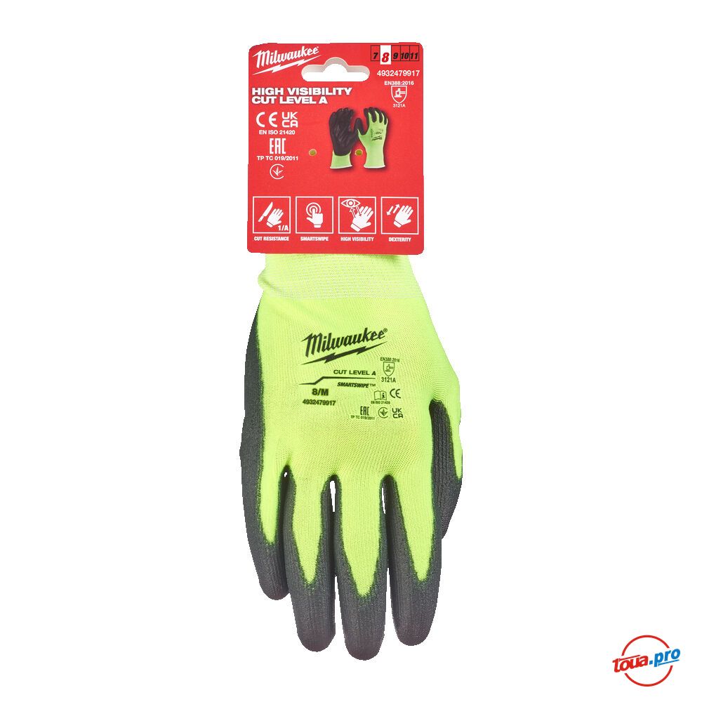 Защитные сигнальные перчатки с сопротивлением порезам Milwaukee 1 уровень защиты. Легкие и тонкие перчатки с покрытием полиуретана на ладони.