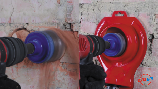 Пылеудаляющий кожух DrillDUSTER 82 - эффективное решение для пылеотведения из зоны сверления сверлении алмазными, твердосплавными коронками, твердосплавными бурами и сверлами.