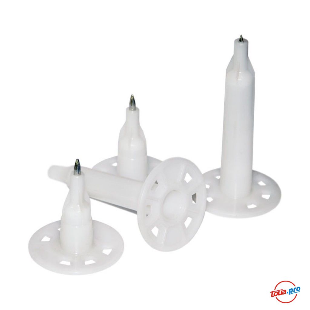 Тарельчатый дюбель с гвоздем для монтажа теплоизоляции GNIN-150-BT применяется для крепления теплоизоляции к бетону, камню и кирпичу. Дюбель-гвоздь имеет широкую головку, это позволяет надежно удерживать утеплитель к поверхности.