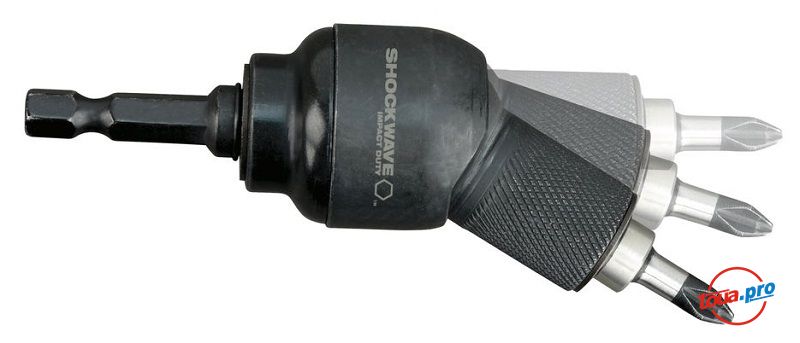 Угловая насадка Milwaukee Knuckle для беспроводных и импульсных дрелей. Насадка поставляется с 10 битами в комплекте.