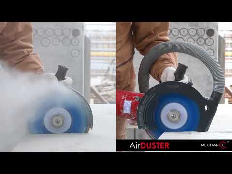 Универсальный защитный кожух для болгарки 125 мм Mechanic AirDuster используется при резке керамических изделий, цикливании пола, штроблении, работах в домашних условиях, где нужен пылеотвод. Устройство блокирует вылет отходов и собирает пыль во время обработки любого материала.